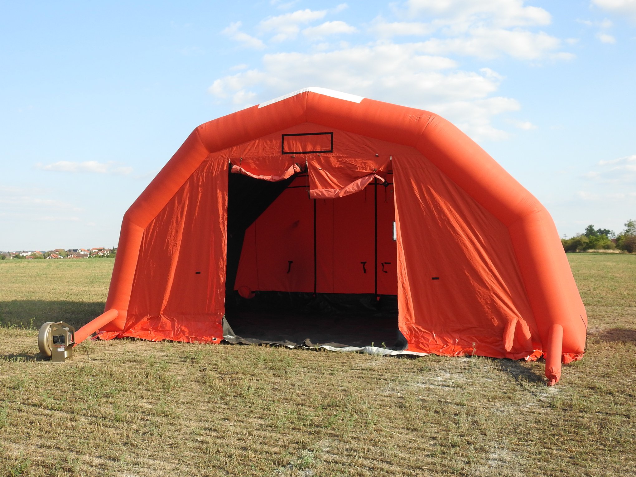 Prvním je veliký pomocník pro naše týlové zabezpečení, preventivní akce a dlouhodobé výcviky. Je jím nafukovací záchranný stan PZG včetně příslušenství. Tento bezmála tři metry vysoký červený krasavec poskytuje prostor dvaceti metrů čtverečních. Díky oboustranně umístěným dveřím může být stan průchozí nebo kompletně uzavřený. Podlaha je odepínací a zajišťuje odolnost proti 20 cm vodnímu sloupci. Nahradí doposud užívaný stan EZ 30, který je bohužel již natolik opotřebený, že vyžaduje rozsáhlou opravu.