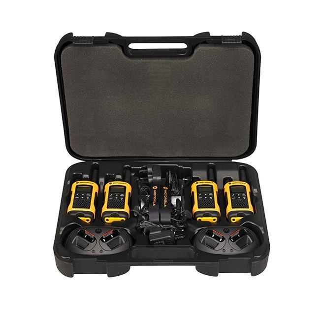 A poslední, čtvrtou sadou pomocníků, je set radiostanic Motorola T80 Extreme. Radiostanice, včetně kufru s příslušenstvím, usnadní komunikaci na většině aktivit naší asociace a hlavně při zdravotnických asistencích. Pracují na veřejném pásmu s možným dosahem až 10 km. Jejich robustní konstrukce je aktuálně nejodolnější na trhu PMR radiostanic.